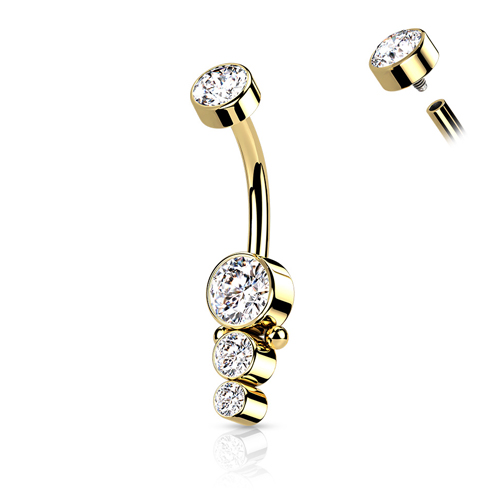 Dreifacher runder Cluster-Dropdown-Bauchnabelpiercing aus Gold mit Zirkonia