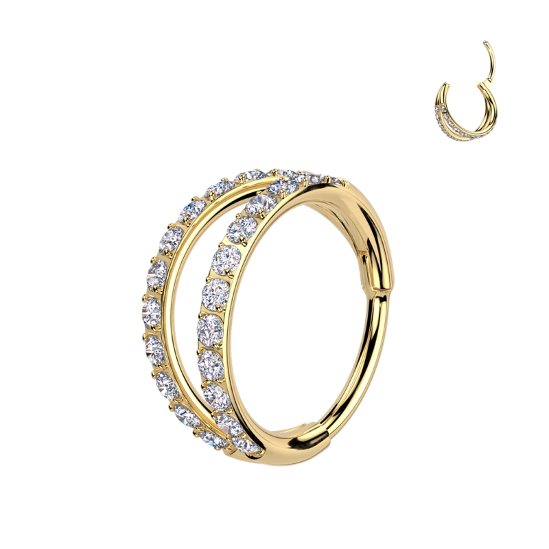 Piercing Titan Clicker Doppelreihe Steine 0,8x7 Gold