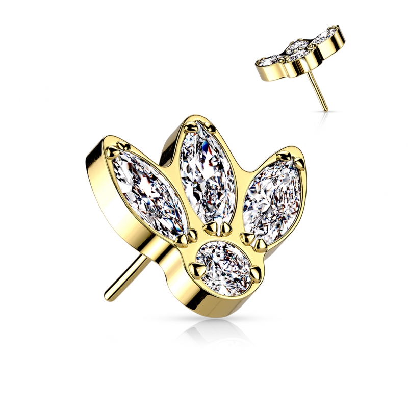 Piercing rund oben 3 Steine 1,2x6 Gold