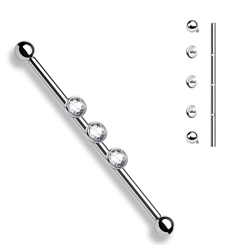 Industrial Piercing 3 Innengewinde mit weißem Edelstein