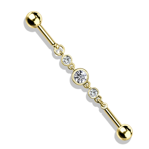 Industrial Piercing 3 runde CZ Steine Kette goldfarben