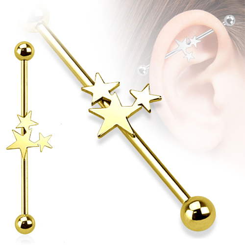 Industrial Piercing Sterne vergoldet