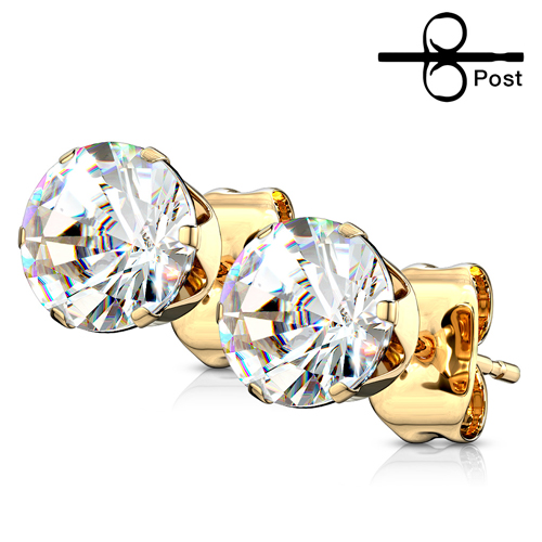 Vergoldete Ohrringe mit 3 mm weißem Stein