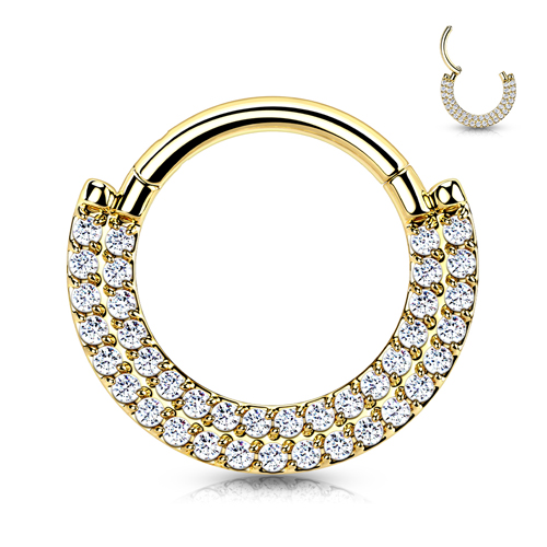 Piercing Titan Clicker Doppelschicht mit Edelsteinen 1,2x8 vergoldet