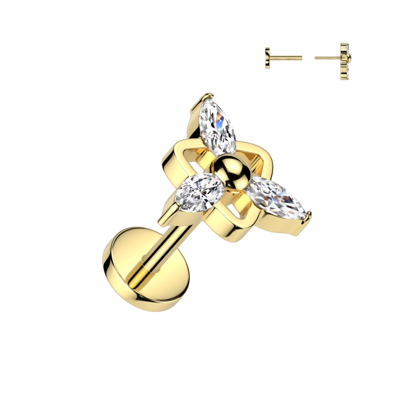 Piercingstein Mitte Marquise Push in 0,8x6 Gold