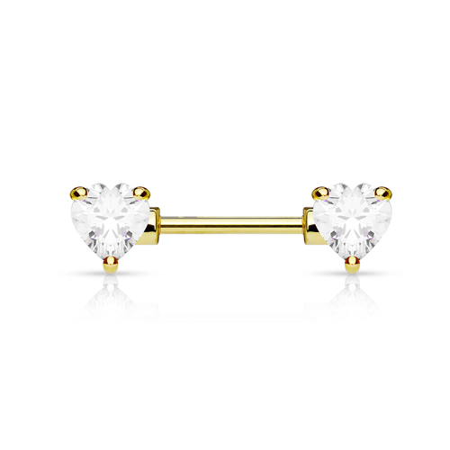Brustwarzenpiercing Herz weiß vergoldet 16mm